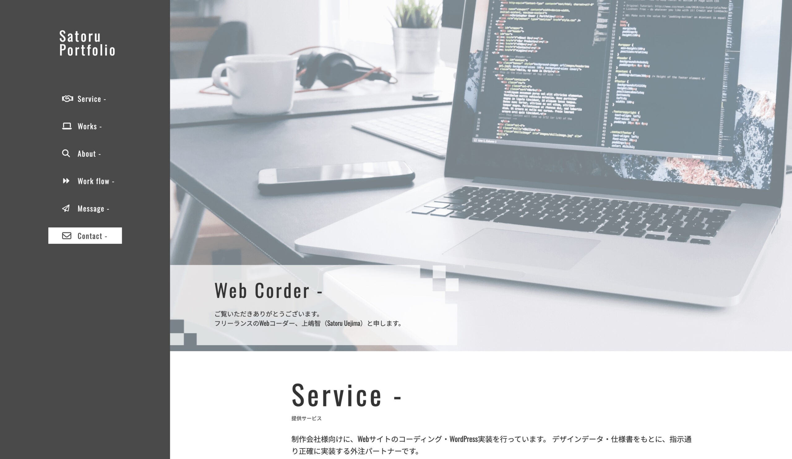 Web制作のコーディング・WordPress実装を中心に対応しています。 制作会社案件を想定したWebサイトの制作実績があります。